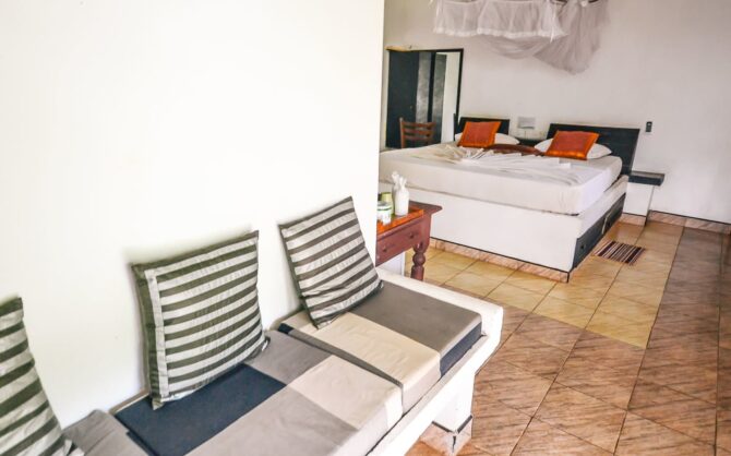 Туристам, которые могут обойтись минимумом удобств ради того, чтобы на несколько дней слиться с тропической природой, стоит отправиться на юго-восток от Сигирии. Здесь на расстоянии в 1,8 км от Львиной скалы, если ехать по дороге, находится Flower Garden – четырехзвездочный отель, окруженный высокими пальмами и другими тропическими деревьями.