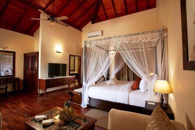 Рядом с большинством вилл оборудован компактный частный бассейн. Меню ресторана отеля включает десятки названий ланкийских и европейских блюд. В двухуровневом баре предлагается широкий выбор закусок и напитков.