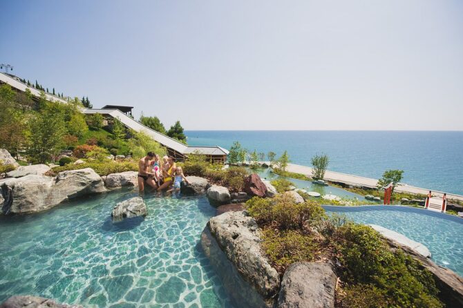 В сервис входят услуги няни на платной основе и воспитателя в игровой комнате. В основном ресторане разработано детское меню. В течение дня гостей развлекает команда аниматоров. Если рассматривать полноценный отдых без лишних забот, то «Мрия Резорт СПА» — лучший вариант из всех предложенных.