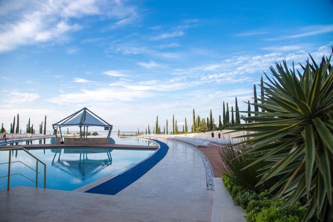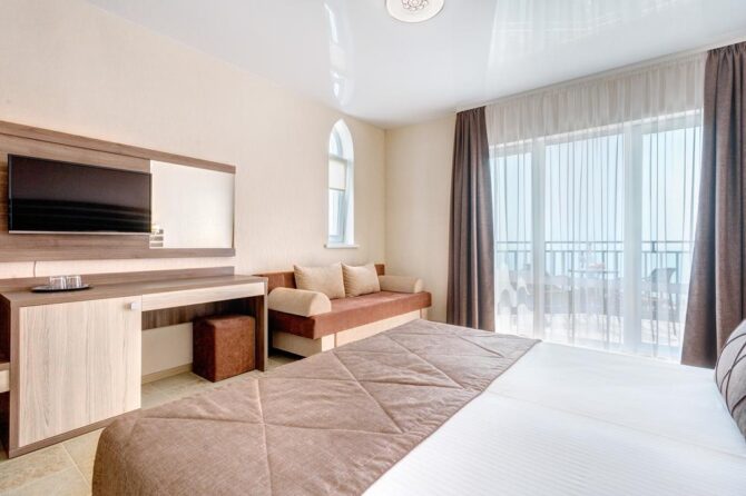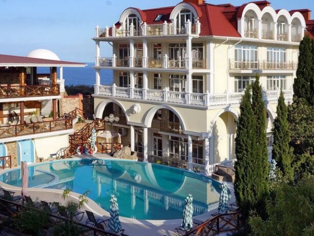 Большой гостиничный комплекс является лучшим отелем Симеиза. Он идеально подходит для семейного отдыха с детьми. В его фонде 422 номера повышенной комфортности. Категория отеля – 5 звезд. Он был открыт в 2014 году и сегодня возглавляет список самых фешенебельных отелей Крыма. На его территории работают: