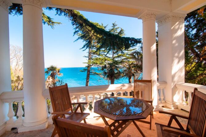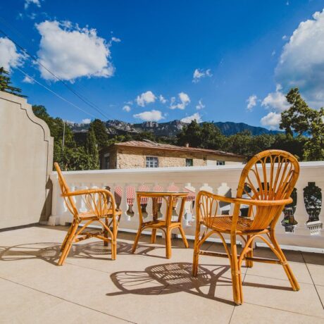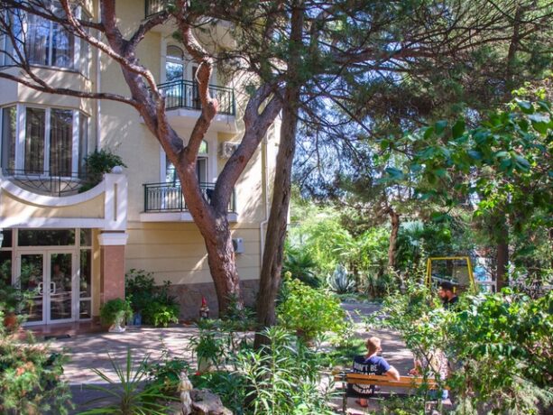 Усадьба, на территории которой сегодня расположен гостиничный комплекс, построена в 1902 году. Последняя реконструкция проводилась в 2019 г. Это место подойдет для тех, кто ищет тихую и спокойную атмосферу. Для прогулок предназначен старинный парк, для занятий спортом – площадка с профессиональным покрытием Deco Turf. К морю гостей отвозят на комфортабельном автомобиле.