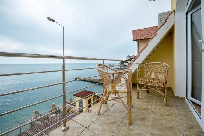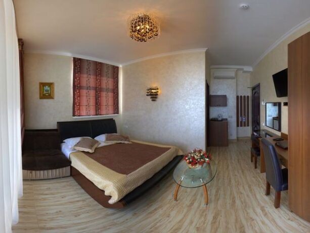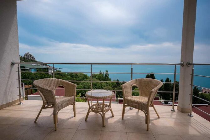 Гостиница расположена в здании 1912 года постройки (памятник архитектуры начала ХХ века). Это бывший пансион Н.К. Александрова-Дольника. Последняя реконструкция проводилась в 2008 году. К особенностям номеров можно отнести высокие потолки, большая часть окон выходит на море, наличие климатпавильона. Из преимуществ стоит отметить наличие собственного парка, расположение на первой береговой линии, близость к центру поселка и основной развлекательной инфраструктуре. Из недостатков – часть номеров не имеют собственного санузла и душа.