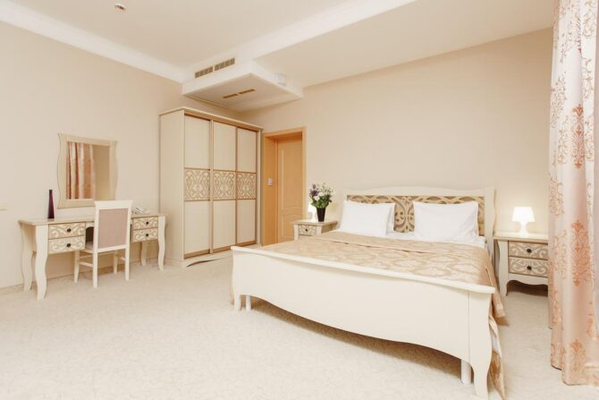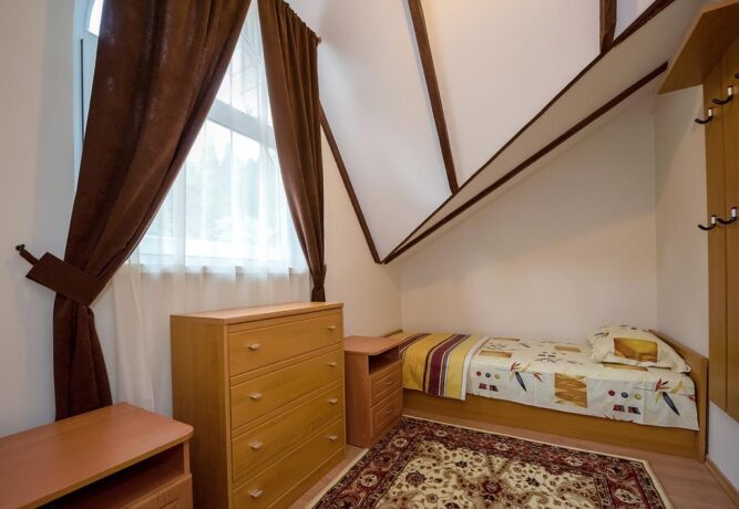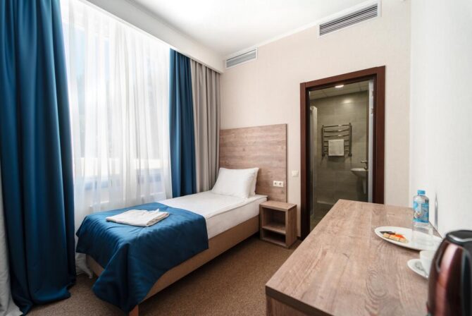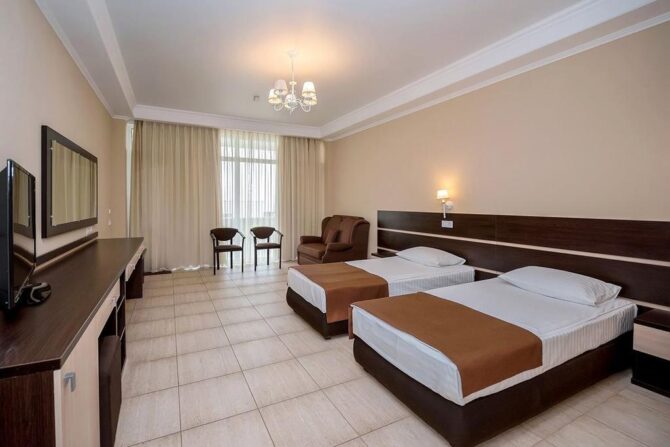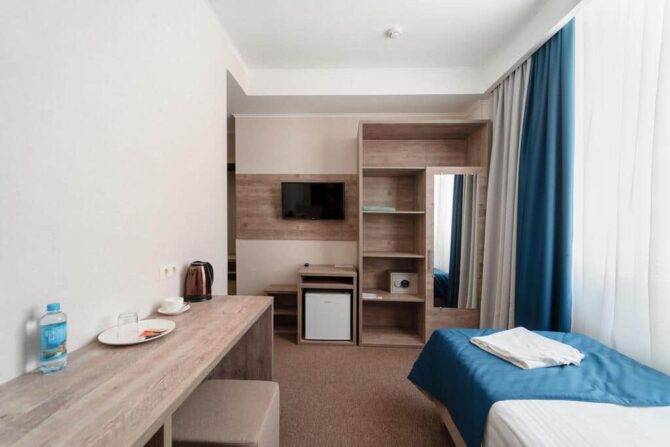 Номерной фонд распределен по трем основным корпусам. В комнатах предусмотрен уголок для отдыха, на кроватях установлены ортопедические матрасы, имеется свой санузел с ванной или душем. Завтрак включен в стоимость проживания. К услугам гостей: