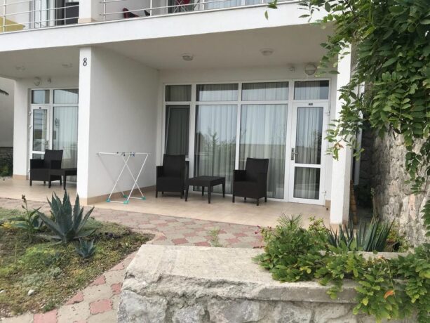До пляжа идти 500 метров, до центра поселка – 300 м. Дети до 3-х лет принимаются без оплаты. Для них во дворе установлена игровая площадка, в кафе подготовлено детское меню, в прокате имеются кроватки и стульчики.
