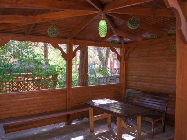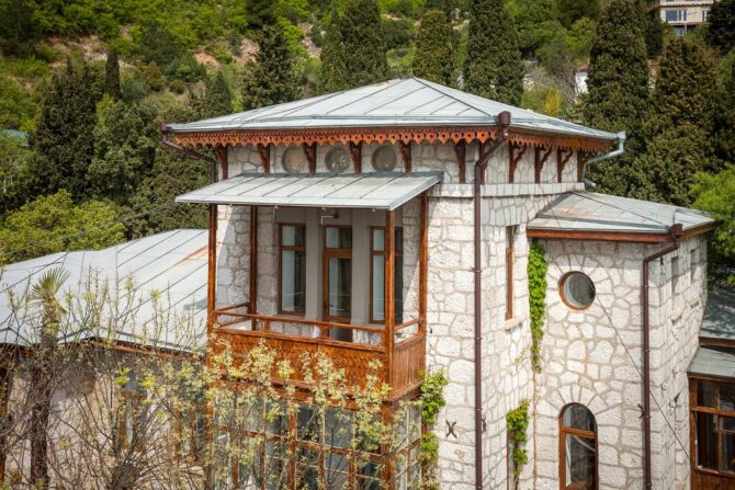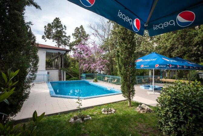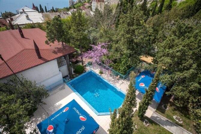 Гостевой дом принимает отдыхающих с апреля по октябрь. Здание было построено в 1910 году. В 2010 и 2017 годах проведена полная перестройка. Последняя реконструкция состоялась в 2016. Отель имеет статус трехзвездочного. Здание со всех сторон окружено парковой реликтовой растительностью. Здесь легко дышится и спокойно отдыхается. Номерной фонд расположен в 3-х гостевых корпусах. Питание не предоставляется.