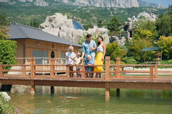 Каждый день для детей проводятся развлекательные программы, мастер-классы по рисованию, лепке и другим видам искусства. На территории открыто несколько баров и кафе, с помощью которых можно решить вопрос с питанием детей.