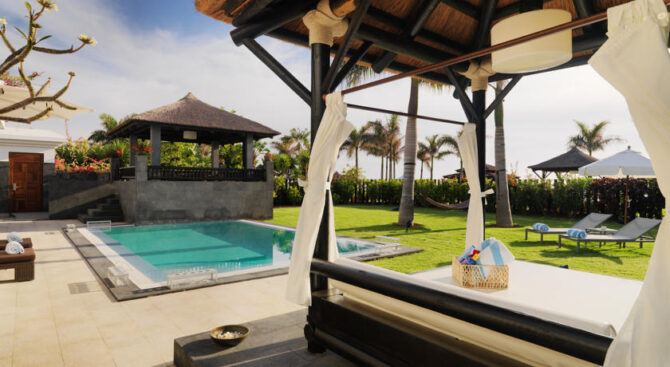 Заселиться гости могут в виллы и номера, все они отличаются повышенным комфортом и расположены в окружении шикарного сада. Все номера и территория отеля выполнена в этническом стиле, что добавит особого колорита. Внутри качественная мебель из натурального дерева, стильные предметы интерьера, кондиционер, телевизор со спутниковым ТВ, современная ванная комната с душем и ванной.