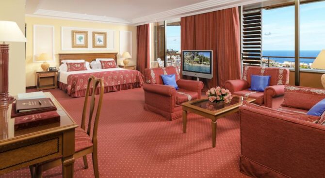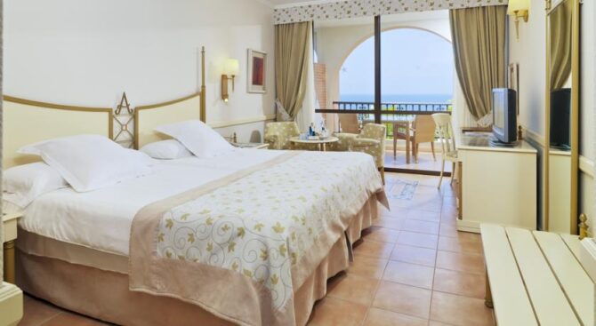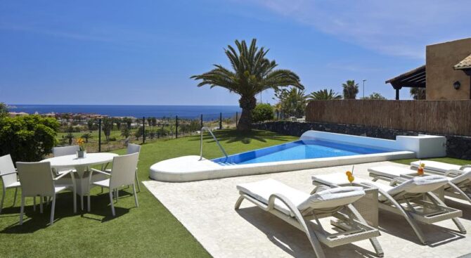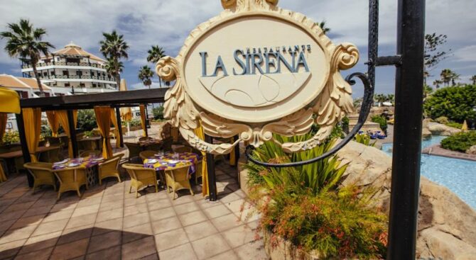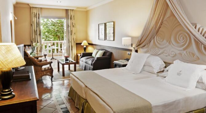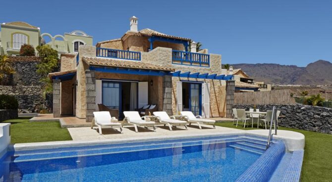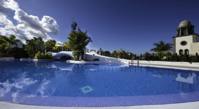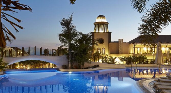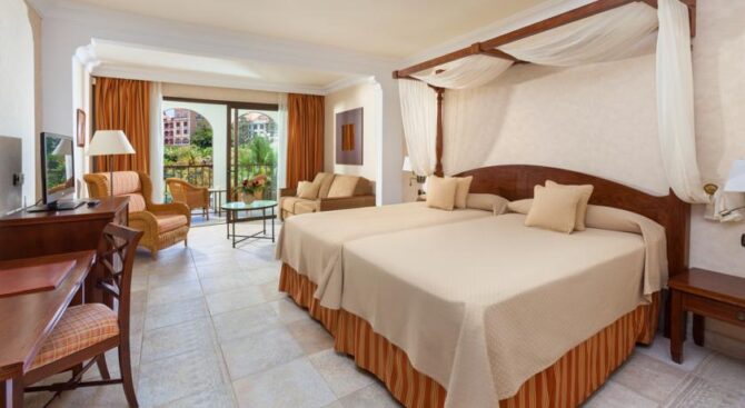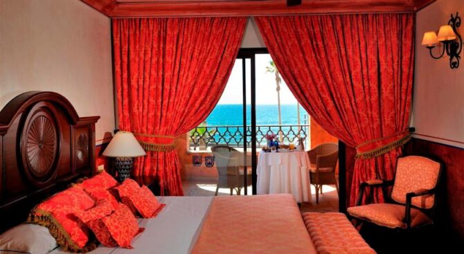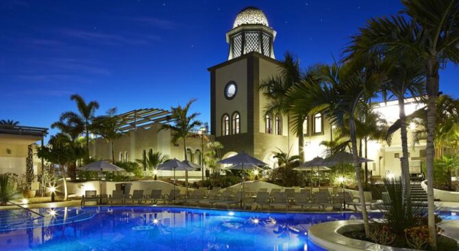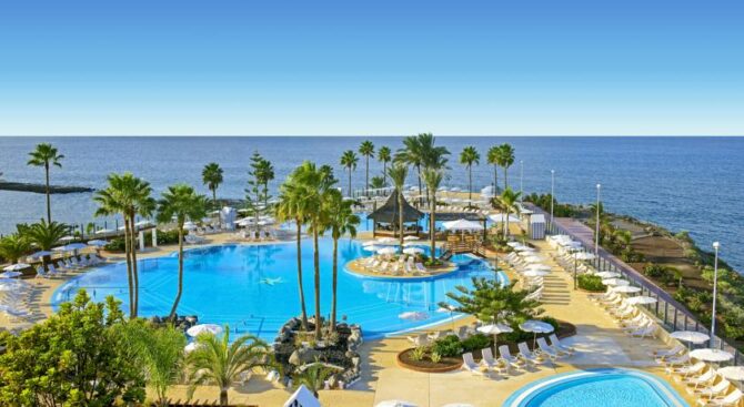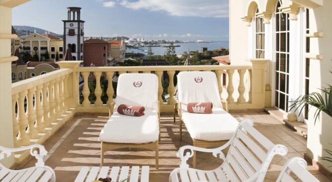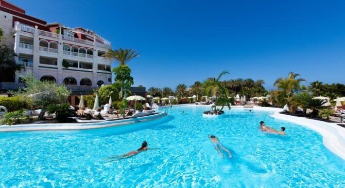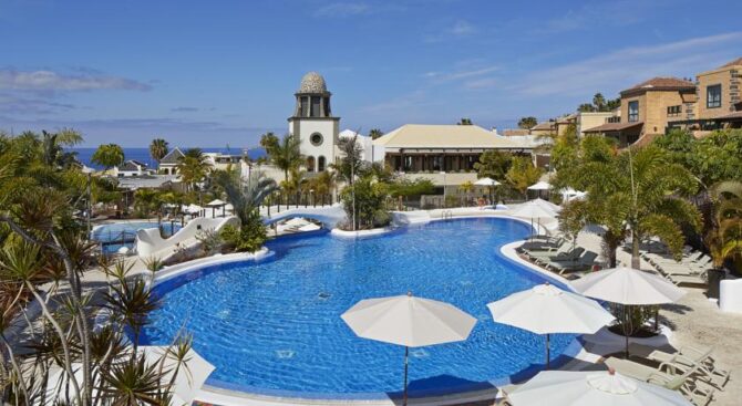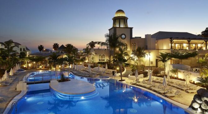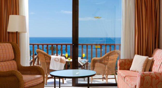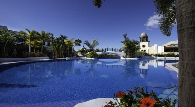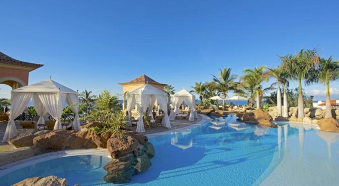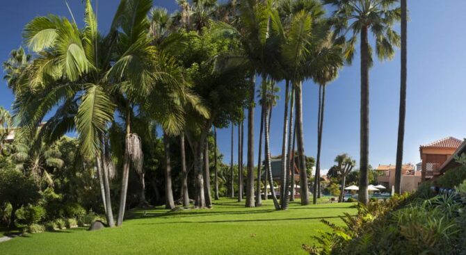Главная особенность этого отеля Тенерифе – роскошный экзотический сад площадью 6 гектаров. Gran Hotel Bahiadel Duque Resort расположен рядом с пляжем Дуке, из окон номеров открываются шикарные виды на океан или сад. Стильные номера с бассейном позволяют разместиться 2–4 гостям. Постояльцам предлагаются стильные виллы или стандартные номера, в каждом номере есть ванна, душ, а также кондиционер, спутниковое ТВ, в виллах есть оборудованная кухня и гостиный уголок.
