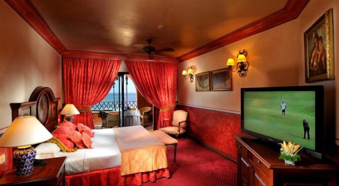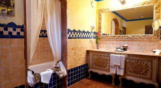 Сама гостиница выглядит как роскошный испанский особняк, все номера выдержаны в этом стиле, в них установлена сделанная на заказ мебель от испанских мастеров. В номере есть интернет, телевизор со спутниковым ТВ, кондиционер и прекрасно оборудованная ванная с косметическими принадлежностями и феном.