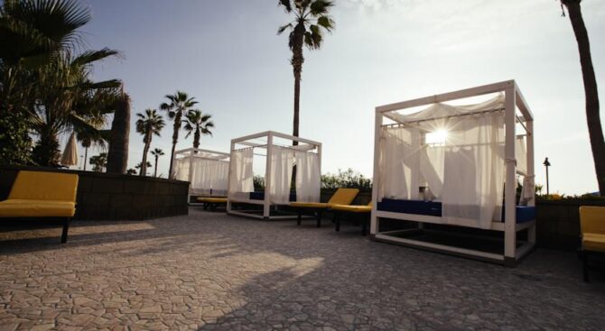 Отель Gran Tacande Wellness & Relax Costa Adeje расположен всего в 4 минутах ходьбы от пляжа Тенерифе. Из окон номеров открывается прекрасный вид на остров Гомера, практически в каждом номере есть собственный балкон. В номерах гостиницы отличная мебель, кровати с балдахином, кондиционер, мини-бар, современная ванная. Все номера в светлых тонах, выполнены со стильной отделкой.