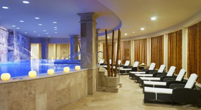 На территории отеля есть бассейны с шезлонгами и гидромассажными ваннами. Сам отель является частью крупнейшего СПА-комплекса, гостям доступен один комплекс услуг СПА за отдых и безлимитный тренажерный зал.