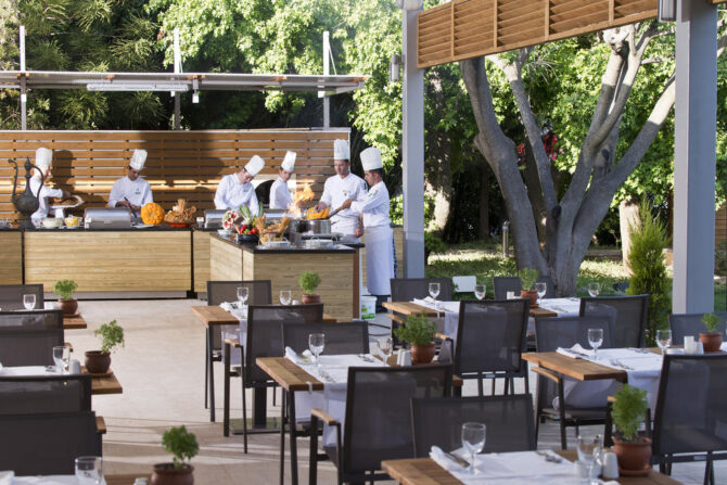 На территории этого средиземноморского отеля работает 3 ресторана и 5 баров. Все отдыхающие имеют возможность плавать в двух «open-air» бассейнах, проходить курсы дайвинга и спа-салон. Наделен приватной зоной отдыха на морском побережье.