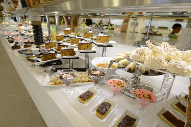 Учреждение установило программу «все включено». А это значит, что в учреждении всегда накрыт шикарный шведский стол, изобилующий различными деликатесами и блюдами интернациональной кухни. Также в летнее время работает пять баров, построенных в разных частях внутреннего двора, один даже есть на пляже. Все прохладительные напитки, за исключением свежевыжатого фреша, подаются бесплатно. Отдыхащие всегда заказывают алкоголь турецкого изготовления. За спиртосодержащую продукцию импортных брендов придется заплатить отдельно.