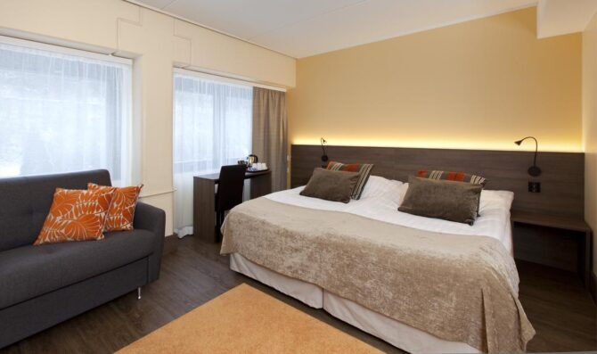 Шикарный эко-отель находится в центре города. Он расположен на берегу реки Аурайоки. За превосходный вид и качество услуг комплекс называют «маленьким Парижем». Отсюда можно дойти пешком до замкового театра Линнатеаттери, музея Вяйнё ААлтонена, рыночной площади. Для размещения предлагаются 184 номера, отремонтированные с учетом современных эко-стандартов (деревянные полы, фирменные ортопедические кровати и т.д.). Завтрак накрывается в ресторане с видом на реку. Бар работает круглосуточно. Администраторы могут помочь с организацией экскурсионных туров. Здесь любят останавливаться семьи с детьми. В радиусе 4-х км находятся детский парк развлечений Купиттаа и аквапарк Юкупарк. Вечером гости могут отправиться на спектакль в летний театр Самппалинна или посетить соревнования на стадионе Пааво Нурми.