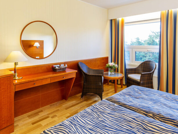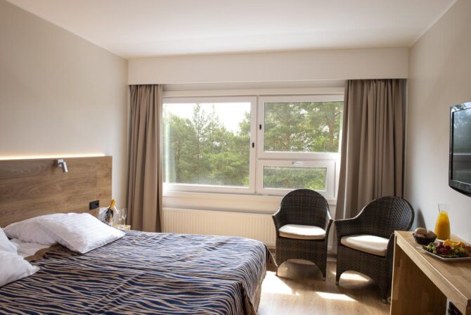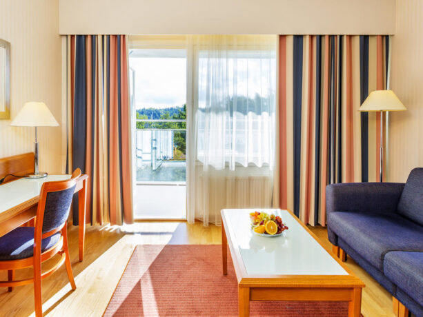 Спа-отель с собственным крытым парком семейных развлечений привлекает туристов, приезжающих с детьми. До центра города – 10 минут езды. Возле гостиничного комплекса останавливается общественный транспорт. Номерной фонд представлен от люксов до недорогих апартаментов. Каждый день для гостей работают аквапарк, тренажерный зал, спа-центр, мини-гольф. Завтрак накрывается в ресторане Terrase. остальные три ресторана работают по вечерам и не каждый день. Расписание работы всех объектов выдается на стойке ресепшн.
