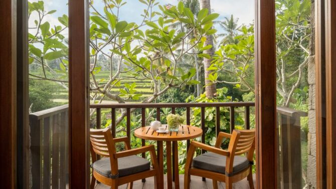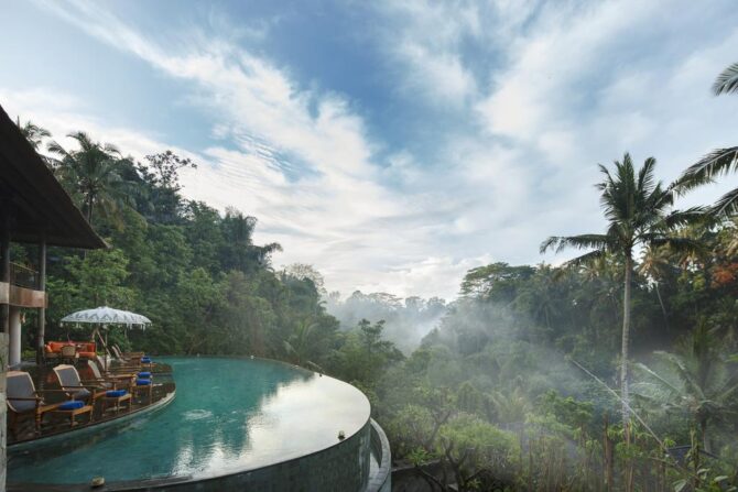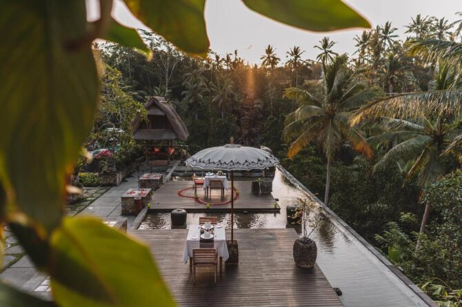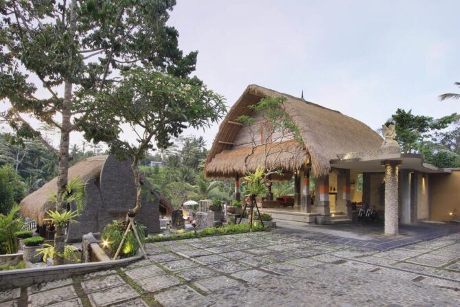 Один из самых известных каскадных ресторанов Индонезии находится в этом отеле и удивляет своих гостей не только превосходной кухней, но и незабываемыми видами на горы и долины рек. Отель открывает для туристов все местные традиции и архитектурные стили, нередко устраиваются кулинарные мастер — классы и художественные вечера, в полной мере рассказывающие о древних индонезийских традициях.