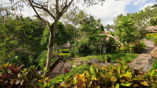 Один из самых больших отелей в Убуде, расположенный в живописной долине двух рек, которые считаются священными для местного населения. Курорт называют центром балийской культуры и традиций, и именно здесь можно посетить небольшие аутентичные ремесленные мастерские, кафе, художественные и исторические музеи. Бунгало и виллы комплекса стоят на берегах этих двух рек, окруженные буйной тропической зеленью, воздух пропитан свежестью и ароматами цветущих деревьев. За этими ощущениями и едут на Бали!