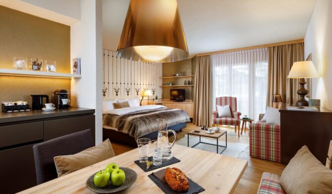 Эти апартаменты — комфортный оазис для тех, кто ищет уютный, современный дом. Интерьер оформлен в стиле Бюнднера. 10 минут ходьбы до центра Клостерс-сквер. Автобусная остановка до горных железных дорог и различных направлений перед входной дверью. Идеальная отправная точка для великолепных походов и экскурсий. 15 минут езды до Давоса. Подъемник Ski Lift Klosters – Gotschnagrat находится в 700 метрах от дома. Апарт-отель предлагает квартиры со спальней и гостиной (площадь 30 кв.м). Есть оборудованная мини кухня. Три верхних этажа имеют балконы. Парковка бесплатная. Курить на территории нельзя. с домашними животными хозяин не принимает.