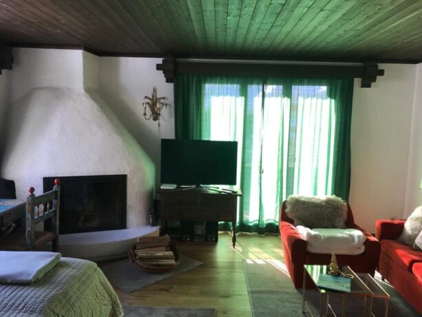 Апартаменты с видом на горы находятся в тихом районе Клостерса рядом с его центром. Хозяйка проживает в этом же доме, сдавая в аренду весь 2-й этаж. На нем находится просторная квартира, состоящая из спальни, гостиной с мини-кухней, санузлом. Принимаются только некурящие люди, без животных. До дома очень легко добраться на машине или пешком. Он находится недалеко от автобусной остановки (100 м) и железных дорог (Gotschna Bergbahn, железная дорога). До горной железной дороги Мадриса также легко добраться на автобусе. В непосредственной близости находится подъемник Selfrangaskilift (500 м), трасса для беговых лыж, ледяное поле, пляжный бассейн, спортивный центр и теннисный комплекс. Красивые пешеходные дорожки ведут в разных направлениях. Поблизости есть продуктовые магазины, кафе.