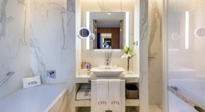 Но это далеко не все, у отеля еще есть бассейн с возможностью использовать лежаки и шезлонги, фитнес-центр с кардиотренажерами. А если подняться на 8-й этаж, то там есть клуб Велингтон с библиотекой и мягким уголком. Еще здесь есть напитки и закуски, из окон открываются потрясающие панорамы.