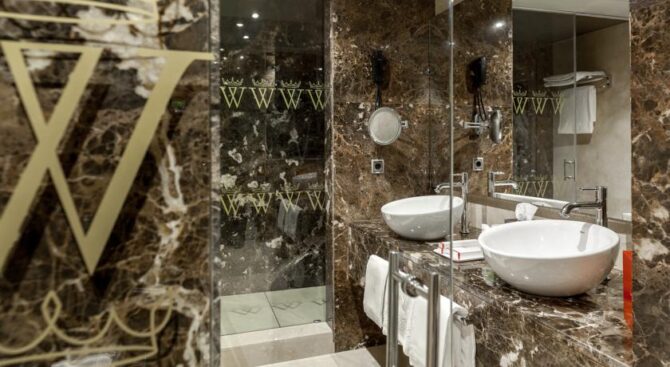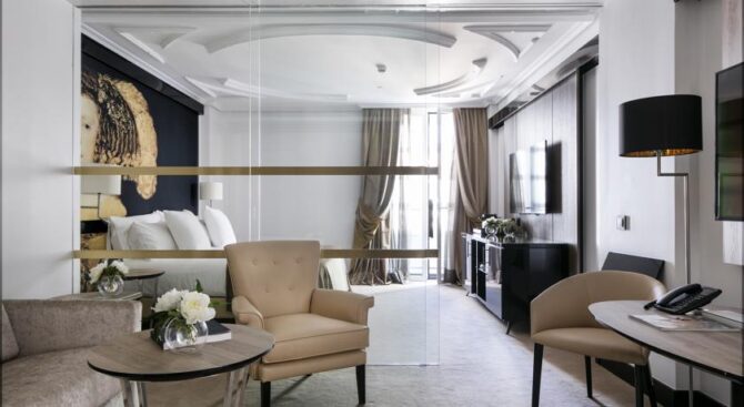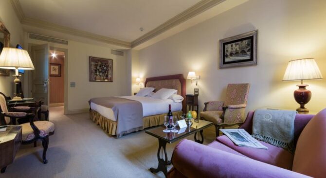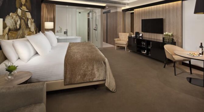 Из окон данного отеля вы можете увидеть панораму городских улиц Серрано и проспекта Кастельяна. Каждый из номеров Villa Magna оформлен в стиле модерна и дополнен антикварным интерьером, что делает их внешний вид весьма интересным и креативным. Здесь также есть сейфы для ноутбуков, с возможностью их там заряжать.