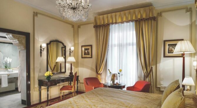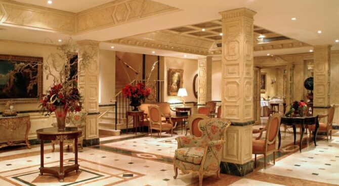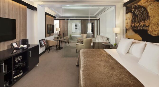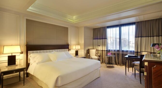 Для любителей высокой культуры, шопинга и изысканных блюд отлично подойдет для проживания Hotel Villa Magna. Территориально он находится в районе Мадрида под названием Саламанка, рядом с торговым районом Золотая Миля. Эксклюзивный и люксовый номерной фонд отеля оснащен беспроводными интернетом, мраморными ванными комнатами, а в некоторых номерах есть тропический душ.