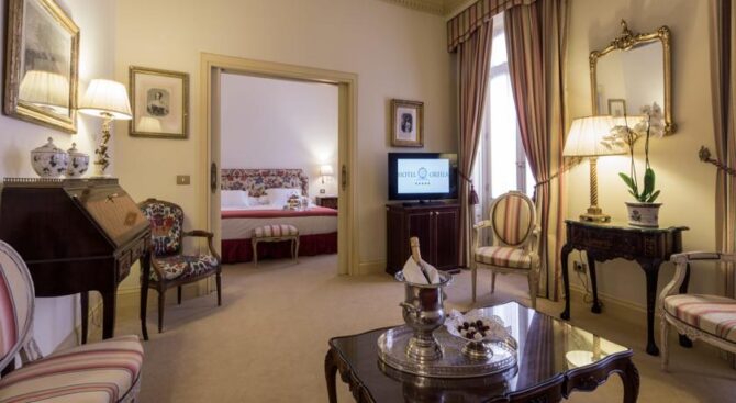 Шикарный отель Gran Meli Palacio de los Duques расположен в самом центре испанской столицы – Мадриде. Всего в трехстах метрах от отеля находится королевский дворец, королевский театр, собор и множество других исторических мест, вид на многие из которых открывается даже с окон номеров.