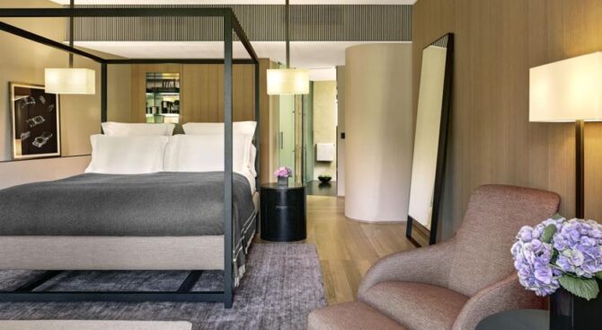 Bulgari Hotel Milano в котором прекрасно все: начиная от расположения в центре и заканчивая внутренним оформлением номеров. Главное преимущество – соседство с Ботаническим садом, которое делает гостиницу своеобразным островком уединения и тишины в шумной жизни центра крупного мегаполиса.