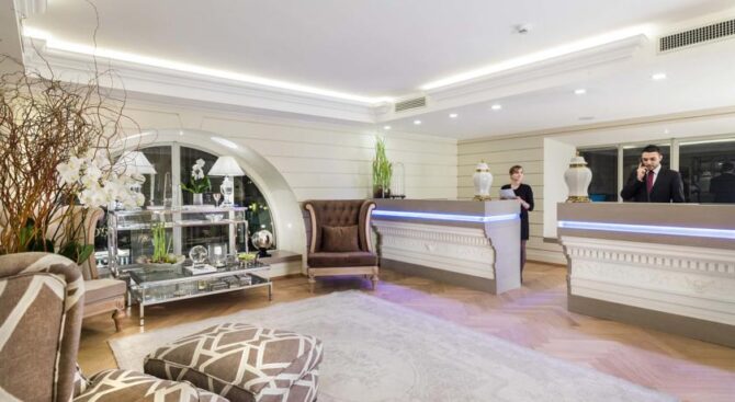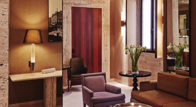 Внутреннее обустройство здания, построенного почти сто лет назад, в стиле архитектурного рационализма выдержано в этом же направлении. Стиль, элегантность, лаконичность, сдержанная роскошь – так кратко можно охарактеризовать интерьер отеля.