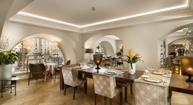 После насыщенного событиями дня гости всегда могут отдохнуть и поужинать в изысканном ресторане с итальянской кухней. В летнее время гостям предлагают разместиться на веранде во внутреннем дворике.