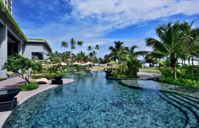 В числе дополнительных удобств – два переливных бассейна, которые станут отличной альтернативной пляжу в знойную жару.