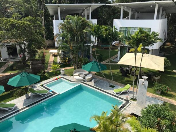 Отель включает в себя три отдельно стоящие виллы с 11 спальнями. Все помещения выполнены в колониальном стиле, отличным дополнением к которому стали современные элементы дизайна. Каждая вилла включает полностью укомплектованную кухню, обеденную зону, гостиную. Во всех спальнях установлены большие двуспальные кровати, имеется отдельный санузел. По предварительному запросу профессиональный повар может приготовить любое блюдо национальной или европейской кухни. Со всех стороны виллы окружены садом, здесь можно отдохнуть в тени раскидистых деревьев, помедитировать или заняться йогой. Общая площадь участка около 1 гектара. Отель прекрасно подходит для ценителей серфинга. Залив в шаговой доступности, рядом функционируют школы, а все необходимое оборудование всегда можно взять напрокат.