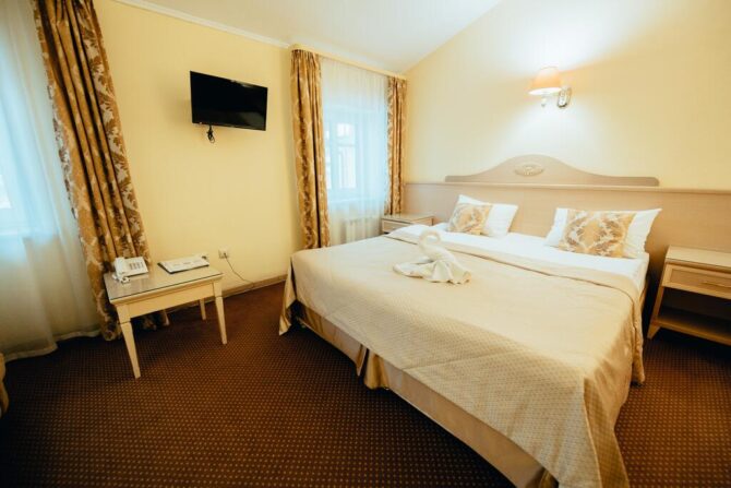 Отель Победа имеет разно классовые номера, которые могут подойти как для бизнесменов или проезжающих туристов, так и для семейных пар с детьми. В отеле имеется бесплатный беспроводной интернет и парковка. Кроме этого, предоставляет свои услуги ресторан и бар. Стоит отметить, что местоположение достаточно удобное в городе, поблизости множество комплексов с развлечениями, а также рядом рестораны и кафе.