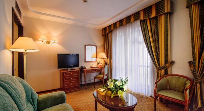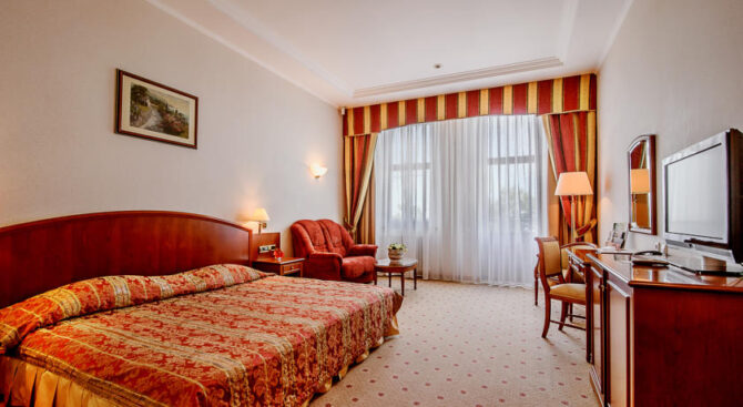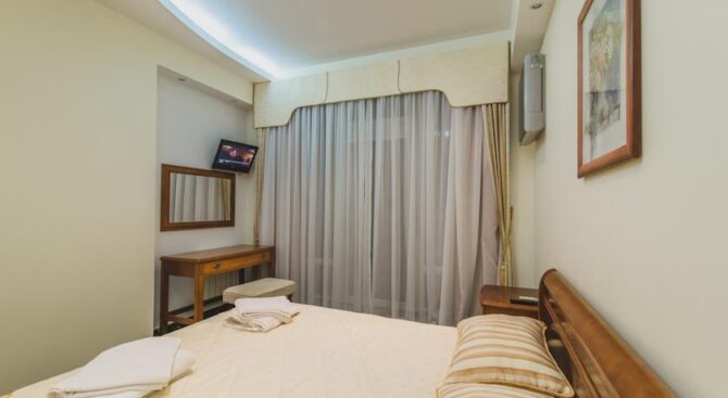 Каждый номер обставлен в классическом стиле в сдержанных светлых тонах и располагает всем, что сделает отдых комфортным: кондиционером, телевизором, косметическими принадлежностями.