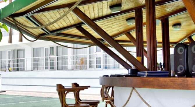 Этот стильный отель находится на первой береговой линии. В нем 114 номеров разного уровня комфорта, есть семейные номера. Каждый из них разделен на зоны и располагает всем, что сделает ваш отдых максимально комфортным: телевидением, кондиционером, чайными и ванным аксессуарами. Некоторые номера имеют балкон, с которого открывается потрясающий вид на море.