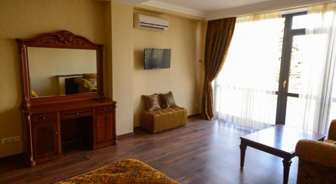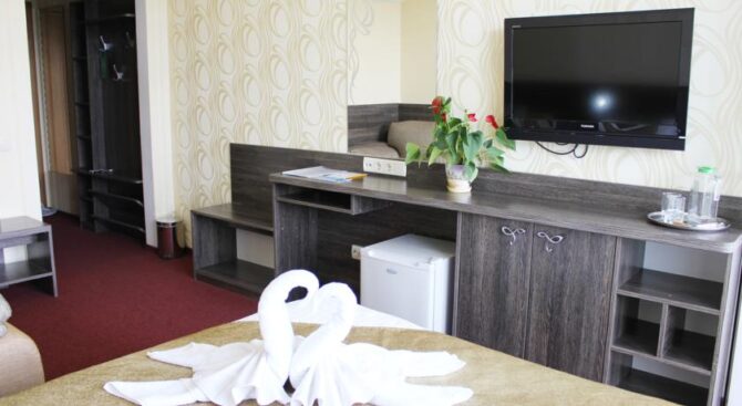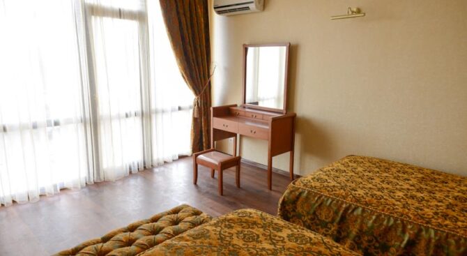 Этот большой и комфортабельный трехзвездочный отель находится всего в нескольких минутах ходьбы от черноморского побережья. К услугам гостей 108 номеров разного уровня комфорта. Для тех, кто не может расстаться со своими домашними любимцами на время отпуска, отель допускает размещение с животными.