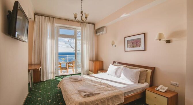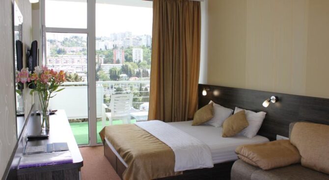 «Отель отлично расположен, до моря – рукой подать. Остановки, магазины, кафешки – все рядом! Останавливались в отеле зимой, нам любезно предоставили обогреватель, т. к. в номере было прохладно. Сам номер просторный. Отель очень грамотно построен – так, из каждого (каждого!) номера открывается вид на море. Есть милая деталь, так, на дверях номеров, где останавливались именитые люди, вешают звёздочку с их именем».