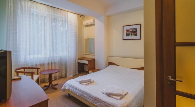 «В отеле есть все самое необходимое. Неплохая кухня в ресторане. Комфортные номера. Радует наличие парковки, т. к. приехали мы на своей машине. Из минусов – высокая цена за проживание».