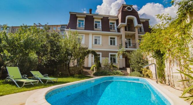 Этот небольшой отель находится в самом центре Ялты. К услугам гостей 10 номеров, в том числе семейные номера и номера для некурящих. Каждый из них обставлен в классическом стиле и располагает всем для того, чтобы отдых гостей был максимально комфортным: телевидением, кондиционером, косметическими и чайными аксессуарами.