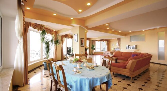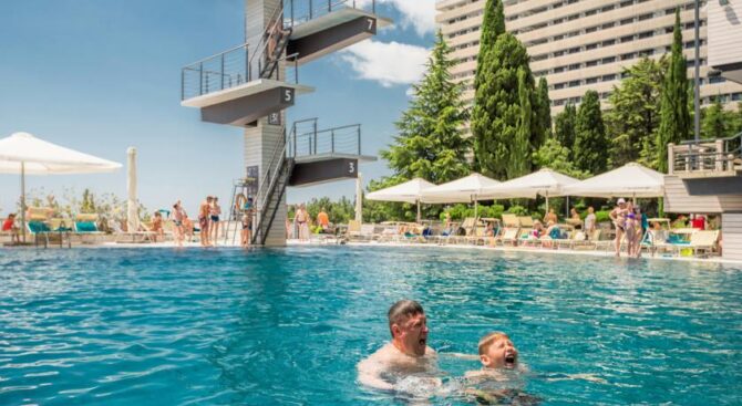 В отеле целых три ресторана, в которых можно насладиться блюдами как русской, так и европейской кухонь. Например, в ресторане Oreanda посетители могут полакомиться французскими и итальянскими блюдами. Помимо прочего, в отеле есть боулинг, бильярд и даже детская площадка, что делает его отличным местом для семейного отдыха.