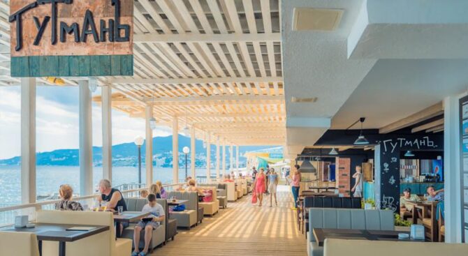 На территории находится несколько теннисных кортов, а также 25 ресторанов и баров, в которых можно попробовать как и местные, так и европейские кулинарные изыски. Например, в ресторане «Мамины лепешки» сервируют исключительно блюда русской и украинской кухонь.