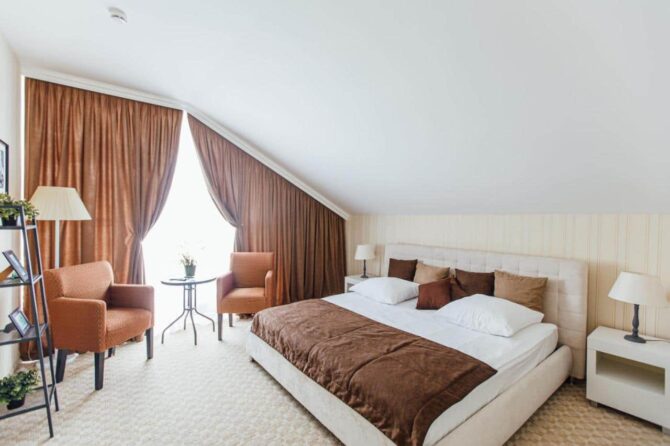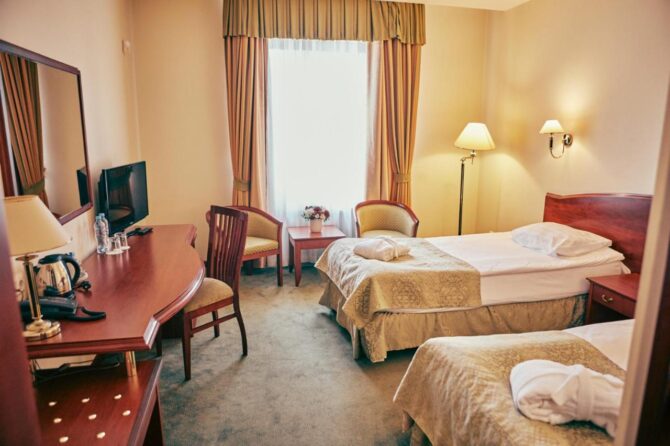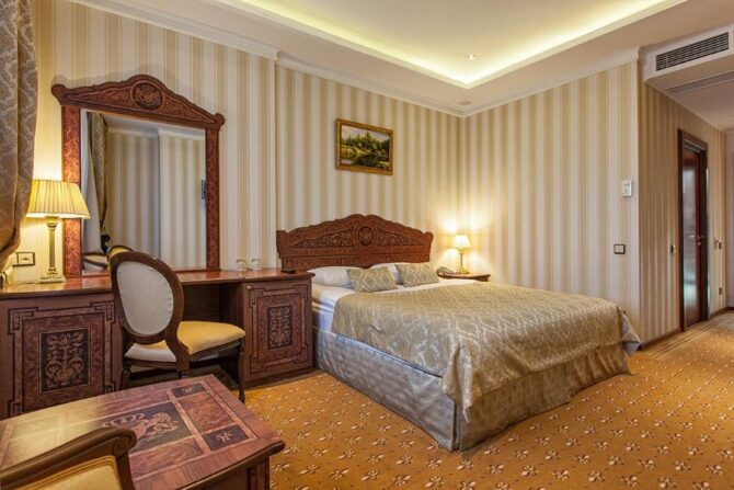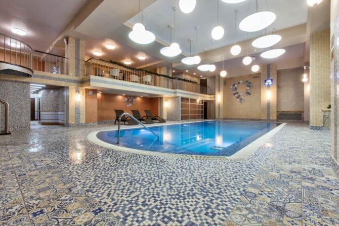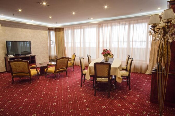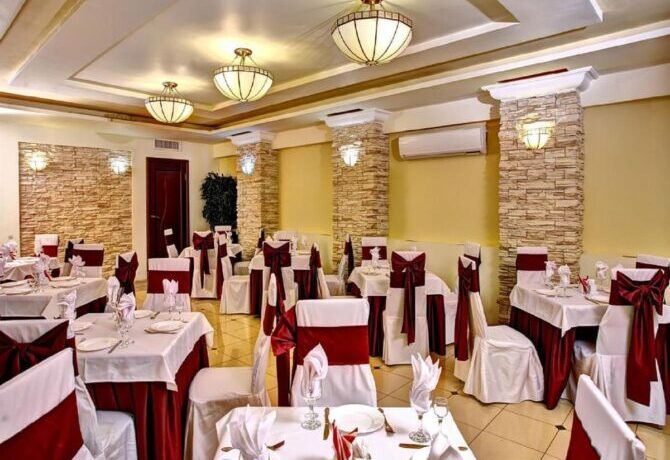 Отель находится на набережной Ярославля и считается лучшей точкой по организации праздничных мероприятий. На территории работает 3 банкетных зала – ресторан гостиничного комплекс с просторным залом и сценической площадкой, уютный зал на 80 человек, зал для банкетов, расположенный в парке «1000-летия Ярославля». Одни уже арендованы под корпоративы, другие открыты для свободного бронирования. В стоимость пакета включены проживание, блюда банкетного меню, развлекательное шоу. Алкоголь можно приносить с собой, но часть необходимо приобрести по прейскуранту ресторана. Гостиница славится роскошным СПА-центром. Он занимает сразу два этажа главного корпуса. К услугам гостей: процедуры, бассейн, сауна, хаммам, соляная комната, тренажерный зал. Рядом находится концертный зал «Миллениум», в котором проходят концертные шоу с участием известных артистов.