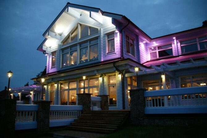 Крупнейший отель Ярославля предлагает 3 новогодних пакета с проживанием на 2, 3 дня и в период рождественских каникул. В самую волшебную ночь года гости примут участие в карнавале. Шеф-повар подготовил праздничное меню в русских традициях. На стол подадут мясные деликатесы, соленья из погребка, поросенка под брусничным соусом, рыбное плато по-мурмански и другие вкусности. На каждого человека запланированы водка, вино и шампанское. В программе вечера – поздравление от Деда Мороза и Снегурочки, игры, музыка, выступления приглашенных артистов из Ярославля. С 1 января и до окончания зимних каникул каждый день будут проводиться мастер-классы и уличные гуляния, дискотеки, работать команда детских аниматоров. Уже построена высокая ледяная горка, а в пункте проката подготовлены ватрушки и ледянки. Для размещения предоставляются номера категорий «Эконом», «Стандарт», «Полулюкс», обычный и президентский люксы. Гости могут забронировать проживание в Финском, Скандинавском, Русском, Европейском коттедже или арендовать дом с русской баней. К услугам постояльцев: сауна с бассейном, конные прогулки, бильярдная комната, аренда спортинвентаря. Отель находится в 15 км от Ярославля.