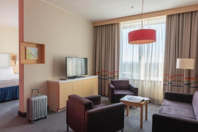 Отели международного бренда Park Inn by Radisson возводятся недалеко от главных достопримечательностей городов. Поэтому здесь не только имеется возможность поучаствовать в праздничном ужине в шоу-программой, но и окунуться в мир новогодних развлечений, проводимых на улицах Ярославля. Для проживания гостей предоставляется 167 номеров категорий «Стандарт» и «Люкс». В здании гостиничного комплекса работает ресторан немецкой кухни «Паулайнер». Доступно круглосуточное обслуживание номеров, доставка еды и напитков. К Новому году комнаты празднично оформляются, устанавливаются елочки с гирляндами. К столу подготовлено специальное меню. В банкетном зале пройдет развлекательная программа в духе немецких пивных праздников с конкурсами, розыгрышами и живой музыкой. Новогодний Парадиз станет незабываемым событием в жизни путешественников. Если кому-то придется провожать Старый год в пути, то ярославский Park Inn by Radisson – лучшее место для остановки. Он находится в 500 метрах от главного ж/д вокзала, поэтому на следующий день можно снова отправиться в дорогу.