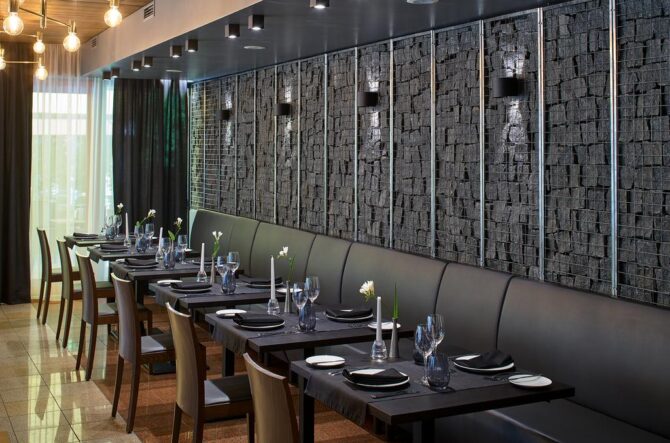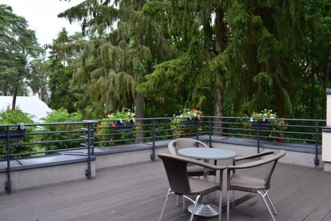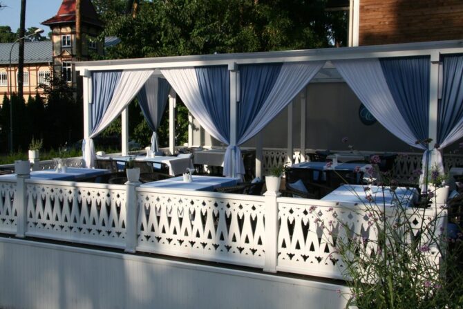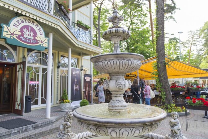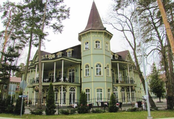 Если смотреть на Балтик Бич – реконструированный 5-звездочный отельный комплекс – со стороны прекрасного Рижского залива, он кажется похожим на большой многопалубный корабль. В этом «лайнере», возвышающемся над расположенным совсем рядом длинным песчаным пляжем, гостей ждет уют 165 комфортабельных и довольно-таки просторных номеров. Для суточного проживания в одном из них может понадобиться от 117-142 € до 426-490 €. Лишь слишком придирчивые отдыхающие находят недостатки в меню роскошного View, итальянского Il Sole или панорамного Perle – трех гостиничных ресторанов. Для всех желающих также открыты двери двух небольших стильных баров и одного относительно недорогого кафе. В теплые летние месяцы гости «Балтик Бич» могут посидеть за столиками вместительной террасы или двух пляжных ресторанов.
