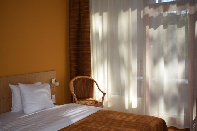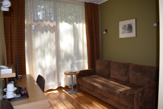Благодаря невысокой башне и остроконечной крыше два корпуса Пегаса Пилс – 4-звездочного отеля Юрмалы на берегу моря – становятся похожими на средневековый замок. Соседство густого соснового бора с одной стороны и песчаного пляжа с другой, а также близость Дзинтари – известного концертного зада – прибавляют желающих остановиться в одном из 38 уютно обставленных отельных номеров. Хотя суточное проживание здесь нельзя назвать дешевым – от 121-131 € до 349-448 €, не только отдыхающие в гостинице, но и горожане знают о ее современном спа-комплексе, европейском ресторане и пиццерии. Вряд ли кто-либо из деловых людей откажется после длительного заседания в небольшом конференц-зале от плавания с коллегами в бассейне или посещения уютной сауны.