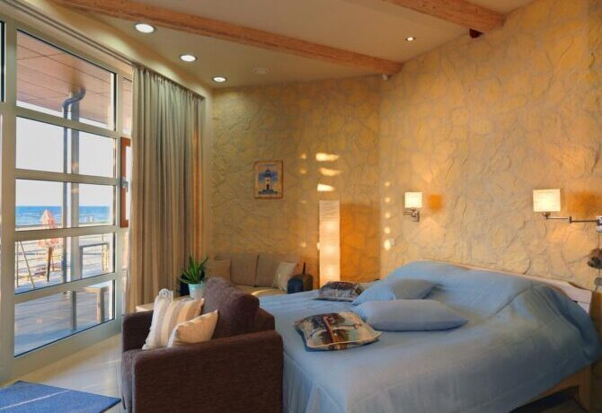 Для многих отдыхающих становится большой неожиданностью натолкнуться на песчаном пляже на расположенное здесь же здание, напоминающее старый деревянный корабль. Не все сразу догадываются, что это 5-звездочный отель, где каждые из 11 просторных и действительно роскошных покоев стилизованы под какую-нибудь страну. Причем здесь можно, заплатив от 210-315 € до 420-630 €, проживать сутки не только в экзотической «Индонезии» или изысканной «Франции» – так называются номера, но и даже в уютной «России». У посетителей шикарного ресторана «Маяк» (так переводится название гостиницы с английского) возникает ощущение, словно они плывут на старинном судне и через большие иллюминаторы – все забывают, что это окна – любуются красотой высоких волн в живописном заливе.