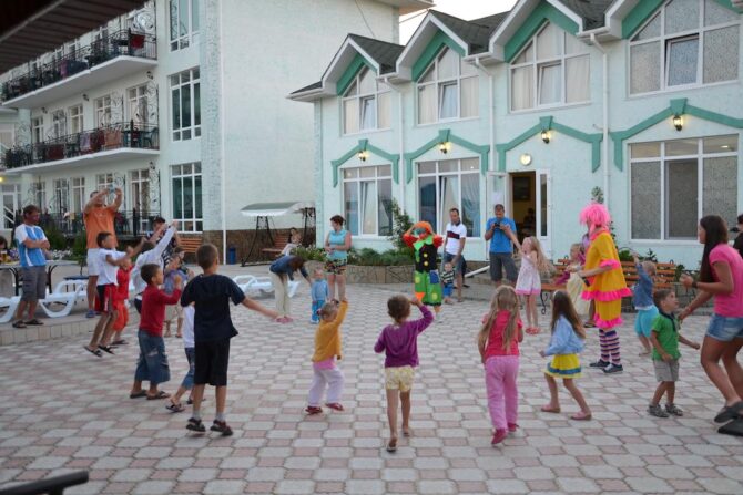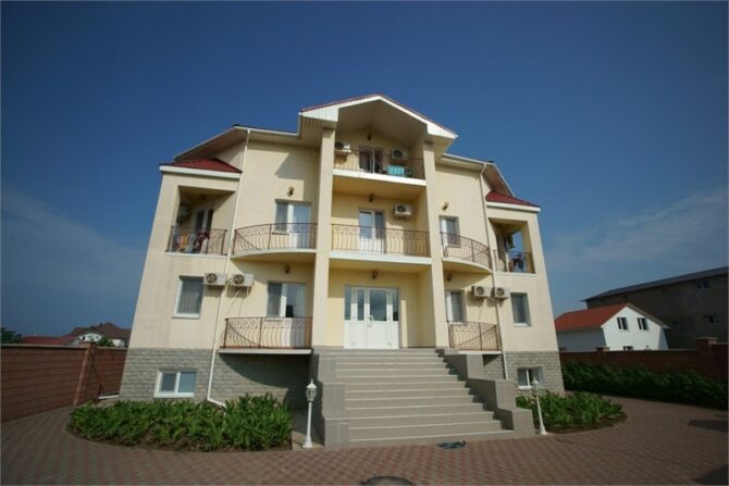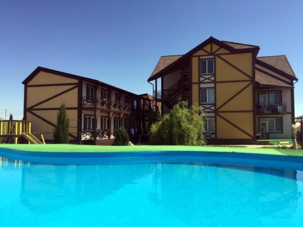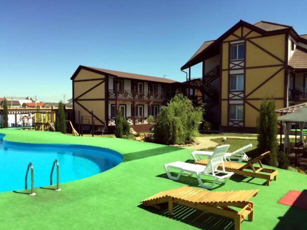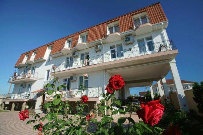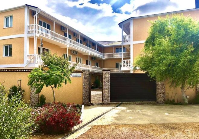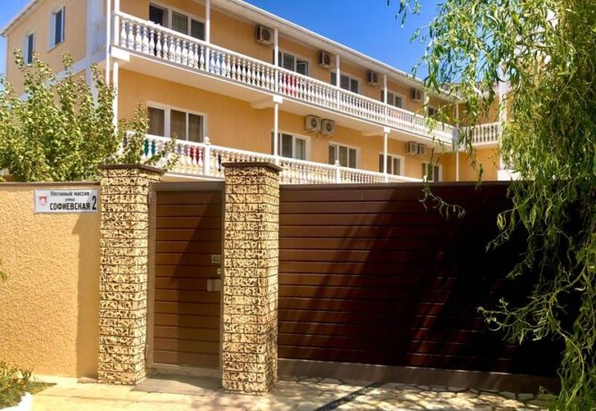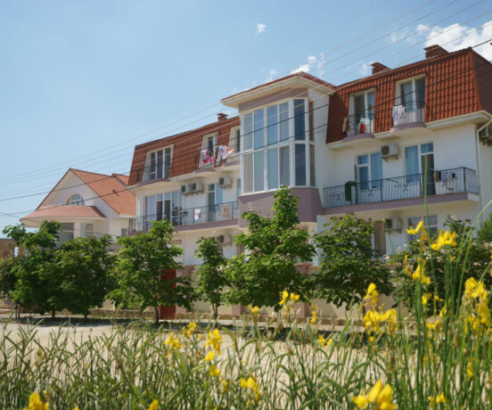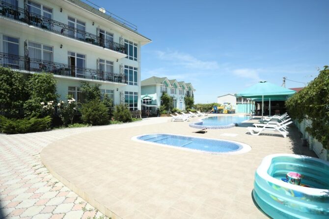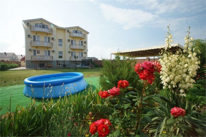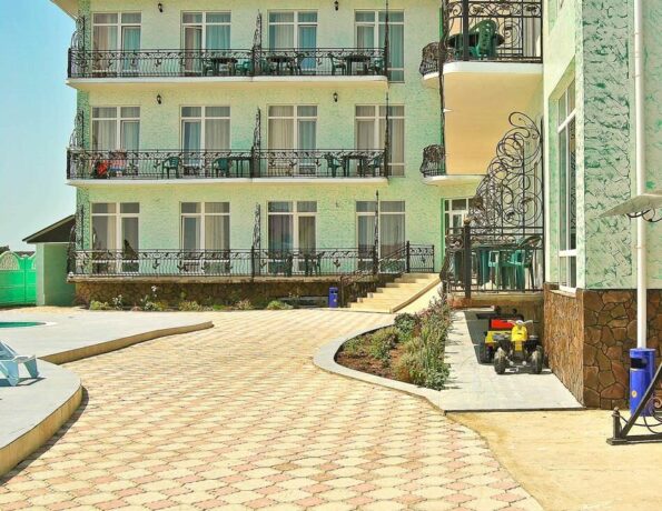 4-этажное здание мини-отеля находится на закрытой охраняемой территории. Несмотря на то, что море находится в 600 метрах от корпуса, гостевой дом предлагает отдых на собственном пляже с шезлонгами и теневыми навесами. Во дворе отеля оборудована детская площадка, имеется отличная гриль-зона с профессиональной печью. В здании для детей выделена отдельная игровая комната с игрушками. Предоставляется комплексное питание (за дополнительную плату). По вечерам к детям приходят аниматоры и проводят с ними развлекательные программы (услуга бесплатная).