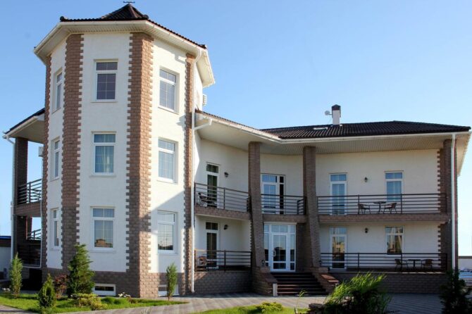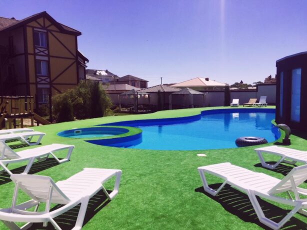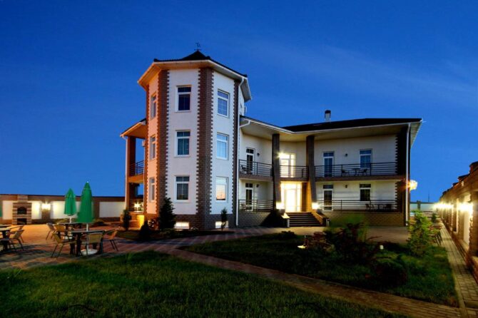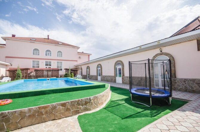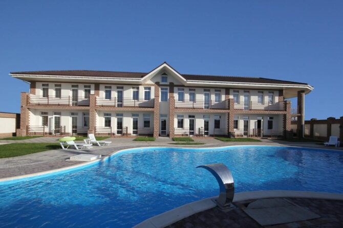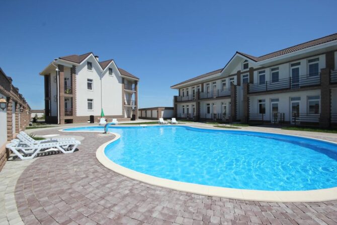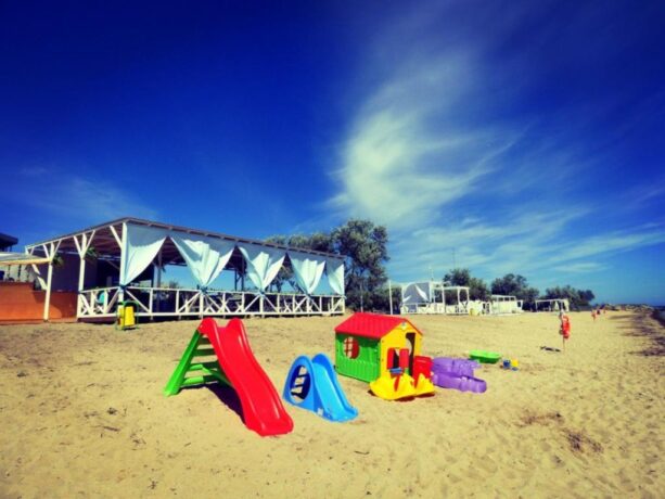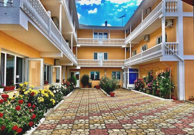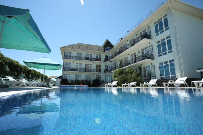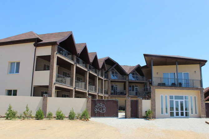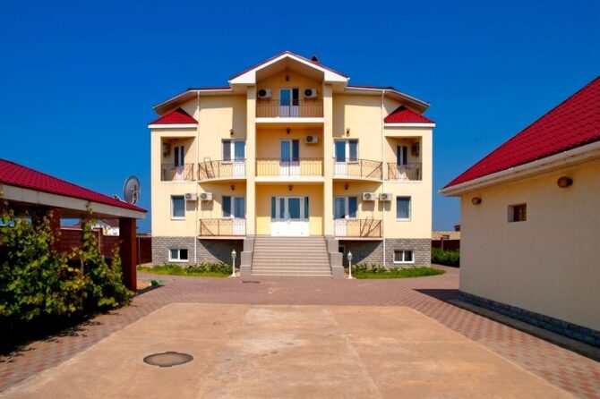 4-этажное здание мини-отеля находится на закрытой охраняемой территории. Несмотря на то, что море находится в 600 метрах от корпуса, гостевой дом предлагает отдых на собственном пляже с шезлонгами и теневыми навесами. Во дворе отеля оборудована детская площадка, имеется отличная гриль-зона с профессиональной печью. В здании для детей выделена отдельная игровая комната с игрушками. Предоставляется комплексное питание (за дополнительную плату). По вечерам к детям приходят аниматоры и проводят с ними развлекательные программы (услуга бесплатная).
