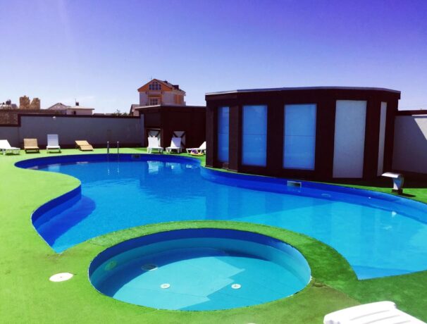Трехэтажный гостиничный корпус расположен на закрытой территории в 10 минутах ходьбы до благоустроенного пляжа «Мохито». Для обеспечения повышенного комфорта отдыхающих во дворе установлен бассейн с оборудованной лаундж-зоной, детский бассейн, кафе и общая кухня. Для детей в отеле разработано специальное меню, приглашаются аниматоры, выдаются кроватки и стульчики, доступны услуги няни по запросу.